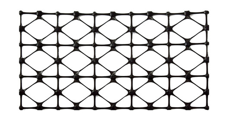 PP Mul tiaxial geogrid quaxial geogrid TX150 TX160 TX170, made of high molecular polymer, is extruded into sheet and then punched into regular mesh pattern, and finally stretched in longitudinal and transverse directions..
